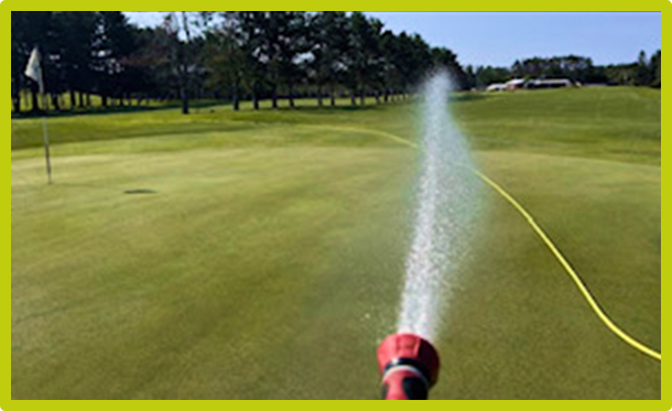 The preferred method of irrigating greens is to check the volumetric moisture content with a moisture meter and then only apply water to the areas on the green that need it. This process allows the superintendent to maintain optimum turf health and playing conditions while also conserving water. The practice of hand watering is not to be confused with “syringing”, which is applying a light mist of water with the irrigation heads to cool the plant during hot stressful periods.